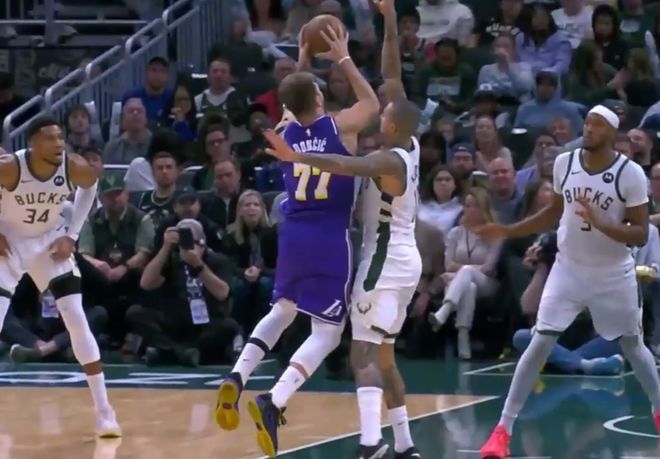 第四节决战,小特伦特单打拉拉维亚撤步三分命中,雄鹿追到13分打停湖人。里夫斯连中3记三分稳住局势,东契奇再造库兹马三分犯规,雄鹿挑战最终失败,分差又来到22分,比赛再无悬念,最终,湖人拒绝31分大逆转,客场惊险击败雄鹿队,取得2连胜。