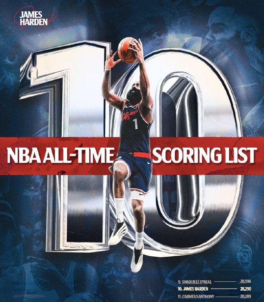 升至历史第十!哈登34+6+5+4拼尽全力,两大奇兵46分逆转快船